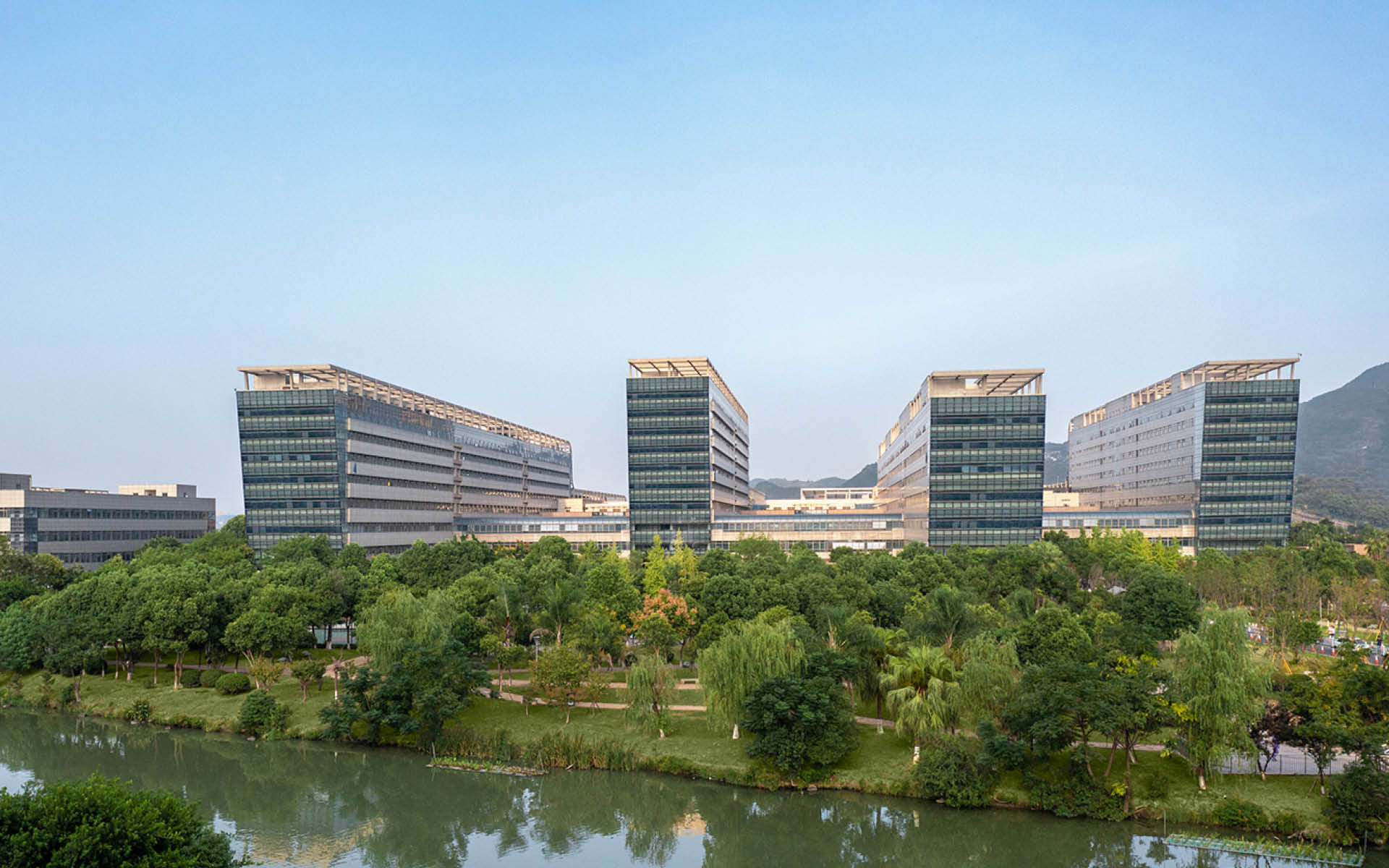 The hospital consists of four major function buildings parallelly arranged with corridors connecting each buildings. The enclosed spaces in between are designed to be courtyard gardens. The Architecture Design was inspired by the scenic mountains and rivers, the height variation echoes to the distant mountains, and the hollow façade structure implies the rivers nearby. The whole building group presents not only a solemn image of a hospital but also creates a casual atmosphere for the users.